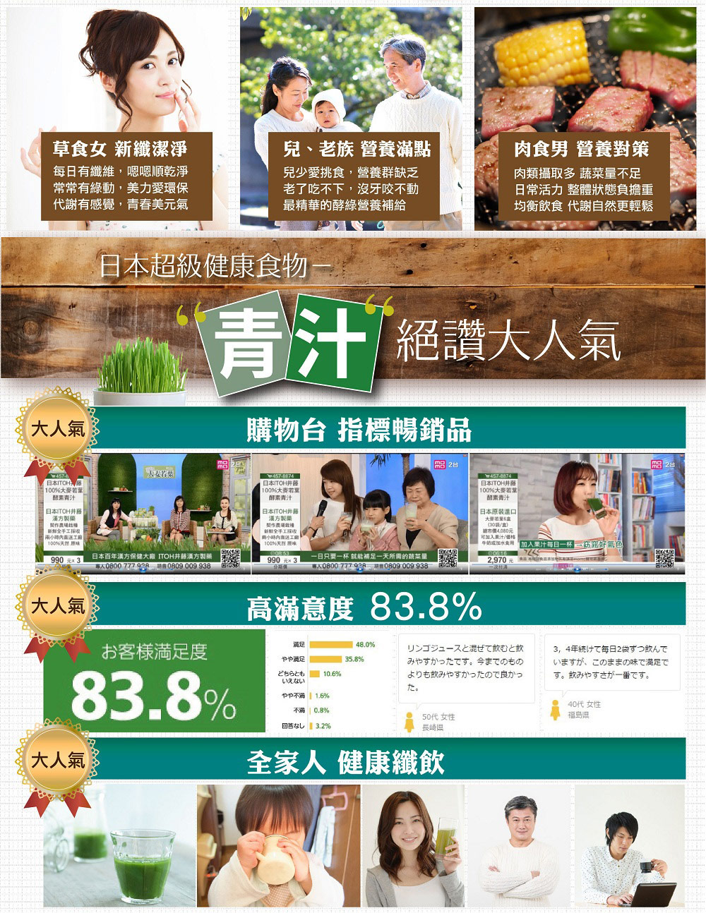 推薦對象.經常不暢快者,幫忙使排便順暢.外食族營養均衡必備.偏挑食、蔬果少吃者的健康平衡.全家人維持每日健康體調.代謝促進,幫助追求窈窕