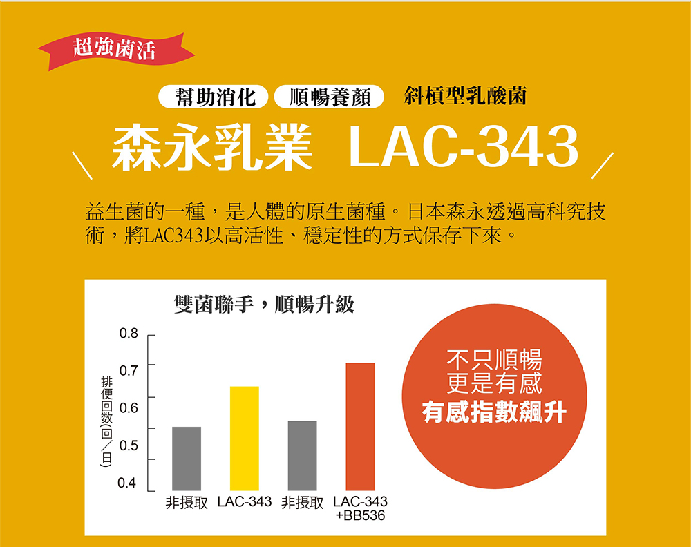 - 森永乳業LAC 343,人體原生菌種