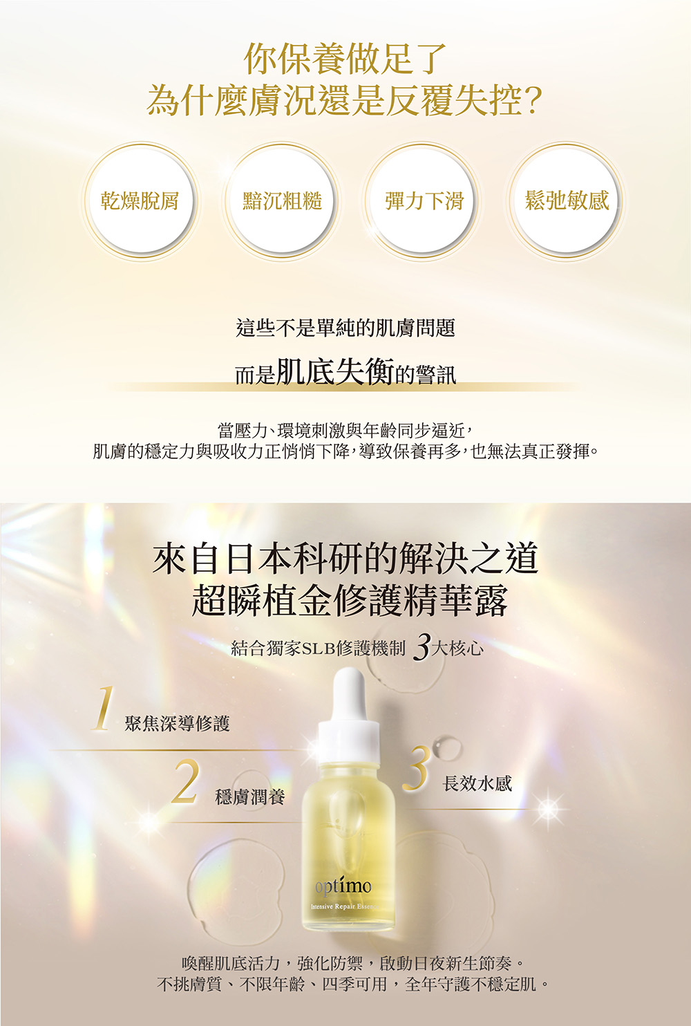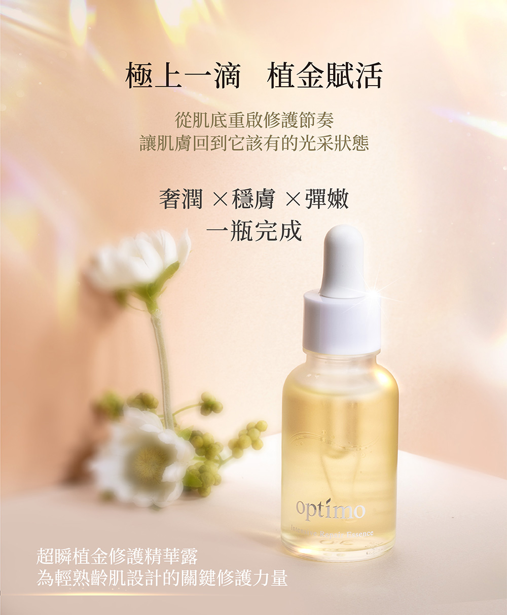 品牌名 Optimo 源自西班牙語「最高峰」,象徵對品質與肌膚未來的極致追求。